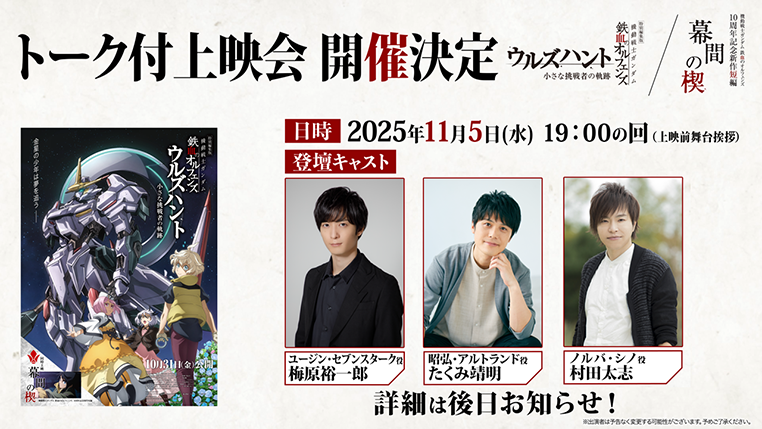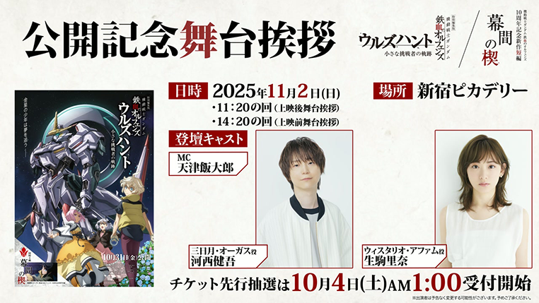 特別編集版『機動戦士ガンダム ウルズハント』/10周年記念新作短編「幕間の楔」本予告公開!11月2日に生駒里奈&河西健吾登壇の舞台挨拶も開催決定!