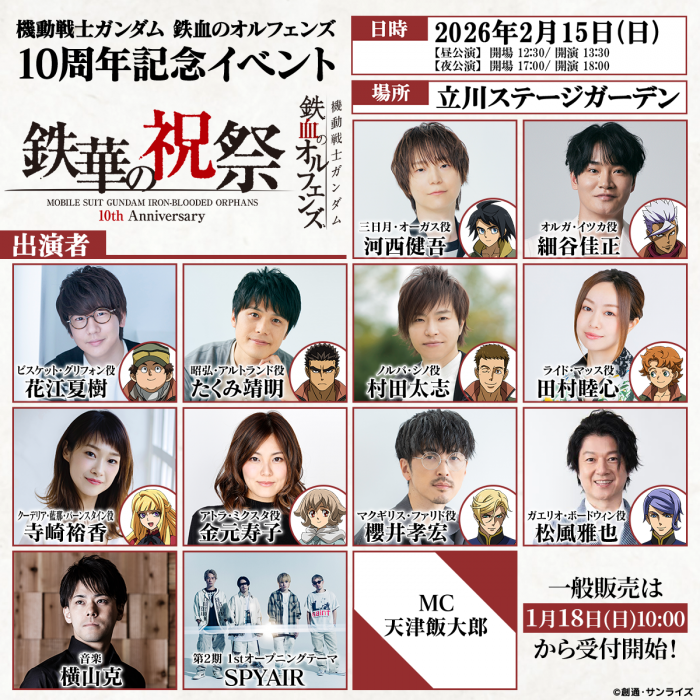 2026年2月15日(日)に立川ステージガーデンにて開催される「機動戦士ガンダム 鉄血のオルフェンズ 10周年記念イベント -鉄華の祝祭-」の物販情報が公開された。